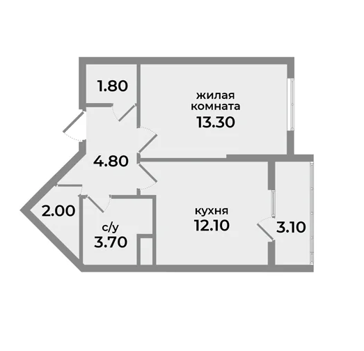 Общая площадь: от 40.8 кв.м.