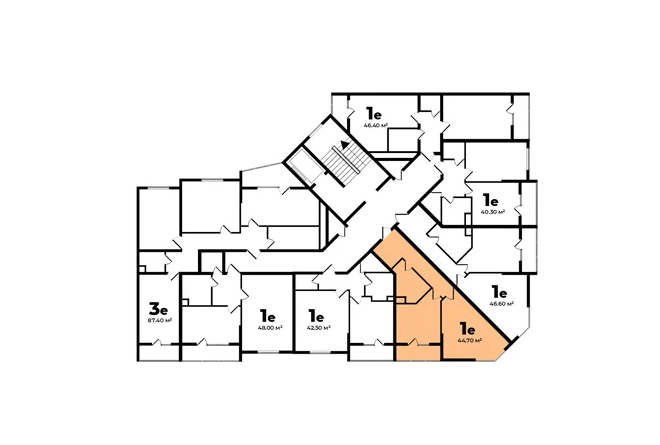 Общая площадь: от 44.70 м² кв.м.