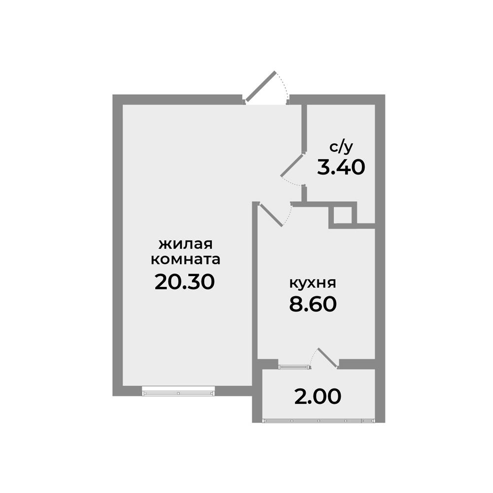 Общая площадь: от 45.20 кв.м.