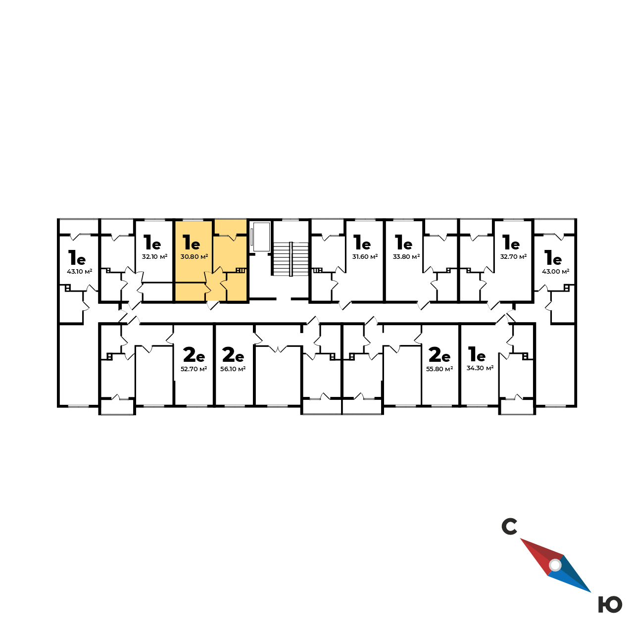Общая площадь: 30.90 кв.м.